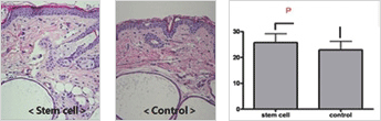 H&E Stain ¹æ¹ý¿¡ ÀÇÇÑ ÇǺΠµÎ²² ÃøÁ¤ ½ÃÇè°á°ú Áٱ⼼Æ÷¸¦ ÁÖÀÔÇÑ ½ÇÇ豺ÀÌ ´ëÁ¶±º¿¡ ºñÇØ ÁøÇÇÁ¶Á÷ µÎ²²°¡ Áõ°¡ÇÏ¿´½À´Ï´Ù.