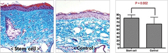 Mason-trichrome Stain ¹æ¹ý¿¡ ÀÇÇÑ ±³¿ø ¼¶À¯Áú ¹Ðµµ ÃøÁ¤ ½ÇÇè°á°ú Áٱ⼼Æ÷¸¦ ÁÖÀÔÇÑ ½ÇÇ豺ÀÌ ´ëÁ¶±º¿¡ ºñÇØ ±³¿ø¼¶À¯ÁúÀÇ ¹Ðµµ°¡ ³ô¾ÆÁüÀ» È®ÀÎ ÇÒ ¼ö ÀÖ½À´Ï´Ù.