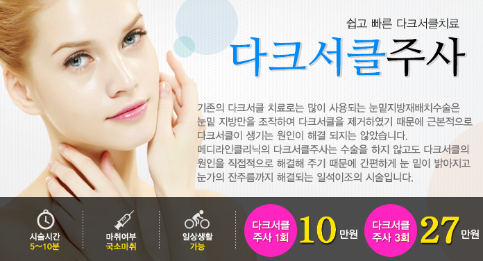 ¸Þµð¶óÀÎŬ¸®´ÐÀÇ ´ÙÅ©¼Å¬ ÁÖ»ç´Â ´ÙÅ©½áŬ¿¡ ÁÖµÈ ¿øÀÎÀ¸·Î Áö¸ñµÇ´Â ¡°´«¹Ø °ú´ÙÇ÷°ü¡±À» ¼±ÅÃÀûÀ¸·Î Á¦°ÅÇÏ´Â ½Ã¼úÀÔ´Ï´Ù. º¸Åö¸®´®Åå½Å°ú Æ®¶ó³Ø»ç¹ÎµîÀÌ È¥ÇÕµÈ ´ÙÅ©¼Å¬ÁÖ»ç´Â °£ÆíÇÏ¸ç ¾ÈÀüÇϰí È¿°úÀûÀ¸·Î ´ç½ÅÀÇ ´«À» ¹àÇô µå¸± °ÍÀÔ´Ï´Ù.